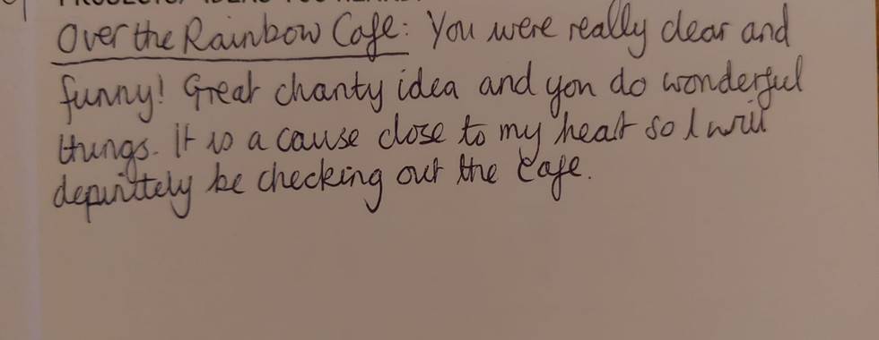 "It felt like the people in the room were sincere, good hearted, and really care about making a difference on the ground. We had conversations on the night with other local groups about how we could help each other, and we've had people pop into the cafe in the days since, who hadn't been before but wanted to check it out after hearing our pitch. It was supportive and empowering, and infused with love and optimism."